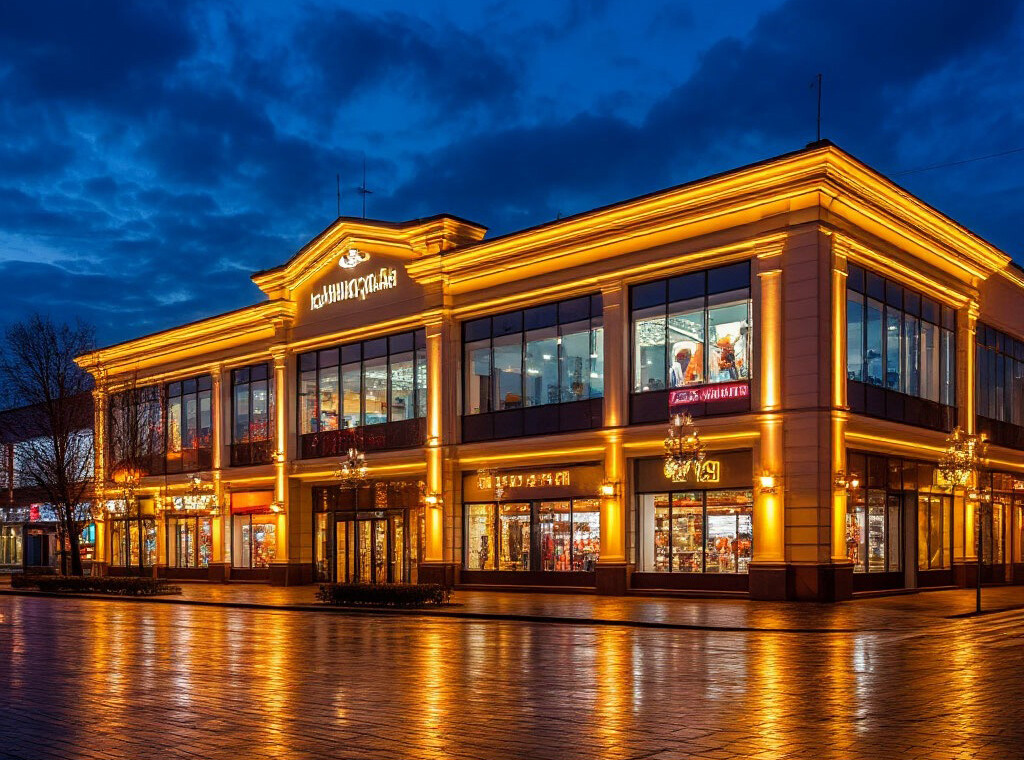 Используются для акцентной или заливной подсветки фасадов бизнес-центров, ТЦ, гостиниц, административных объектов. Обеспечивают узнаваемость бренда, подчёркивают архитектуру, устойчивы к климатическим условиям. Часто применяются RGBW или DMX-модели с динамическими сценариями.